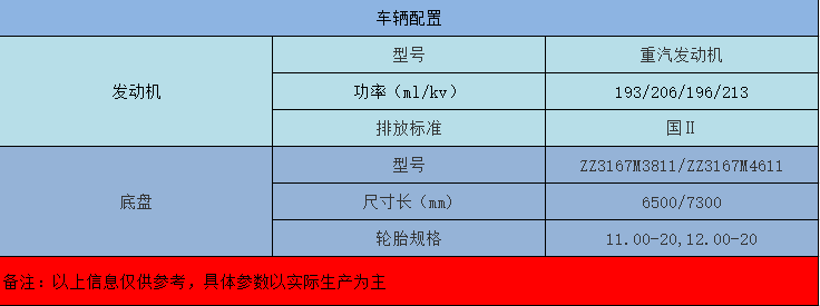 該車為中國重汽成熟產(chǎn)品,動力性優(yōu)越,油耗低,性能穩(wěn)定可靠,并具有多種個性化配置可選擇。適用于礦洞及復(fù)雜工地中短途運輸。